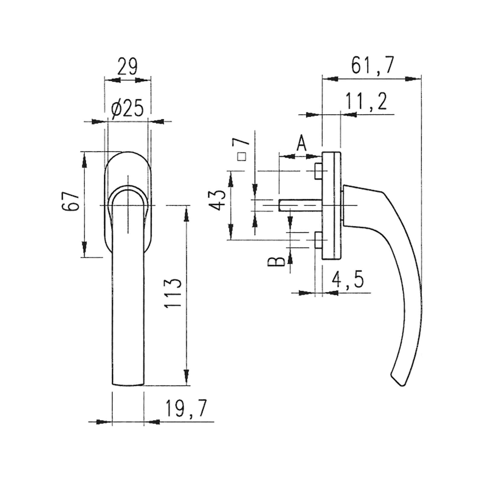 Hinweis: Der Griff ist nicht mehr erhältlich, alternativ kann hier der Würth Fenstergriff AL 420 genommen werden.