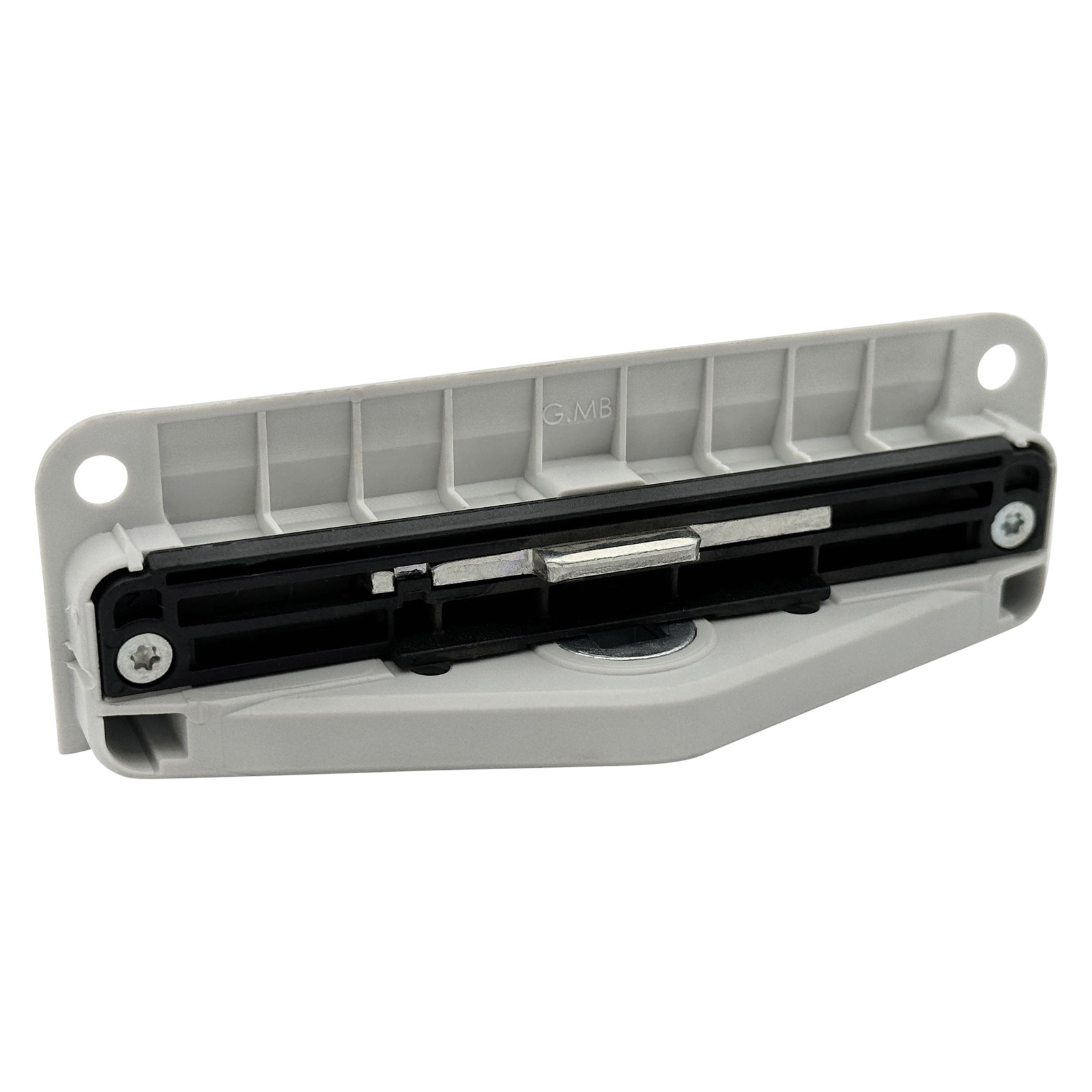 Das Getriebeschloss wird von Winkhaus produziert, das Logo ist eingraviert. Die Bezeichnung "G.MB" ist auf der Rückseite zu sehen.