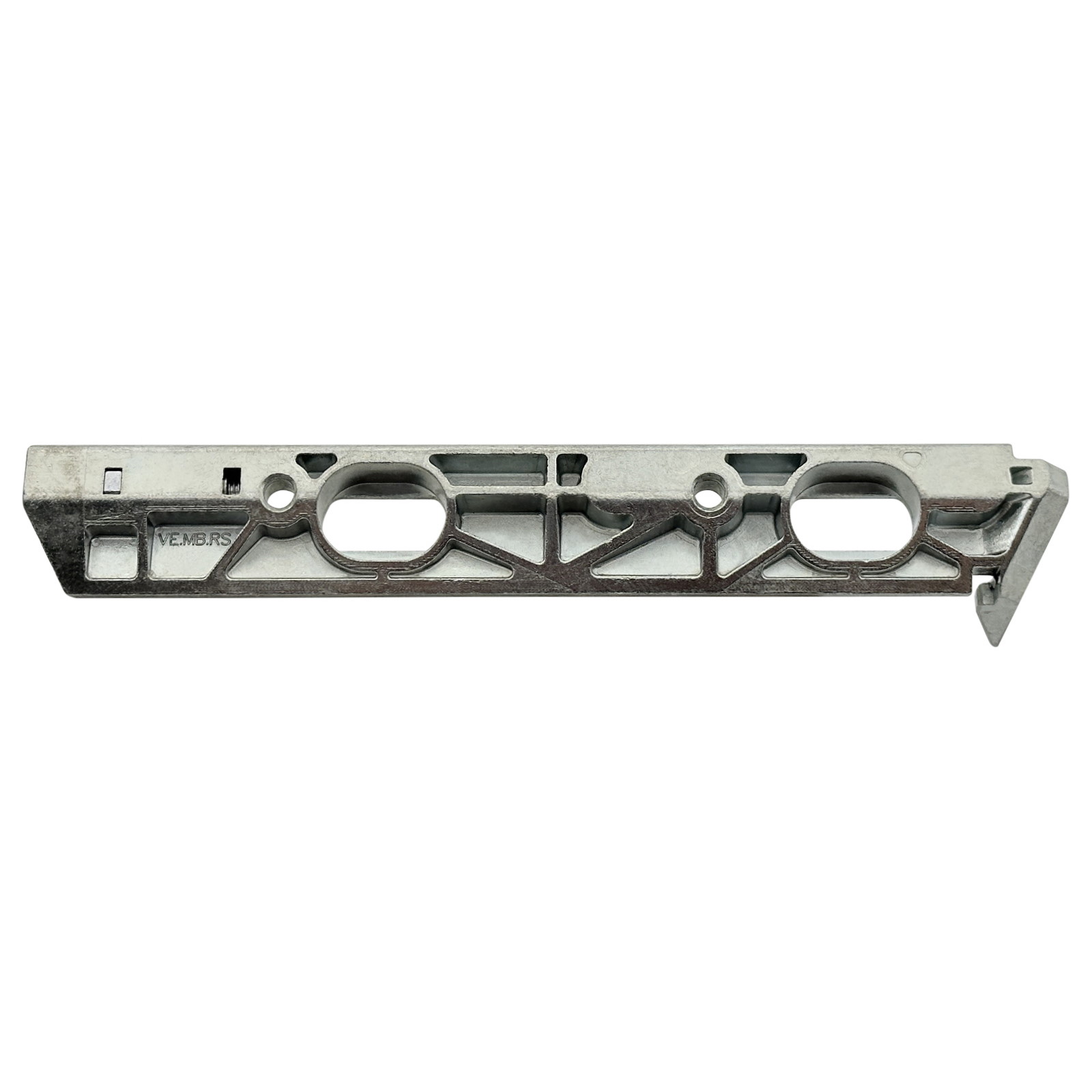 Die Bezeichnung "VE.MB.RS" ist auf der Unterseite eingraviert. Die Verstelleinheit wird in der unteren Ecke des Fensterrahmens montiert und funktioniert zusammen mit dem Ecklager EL.MB.RS.