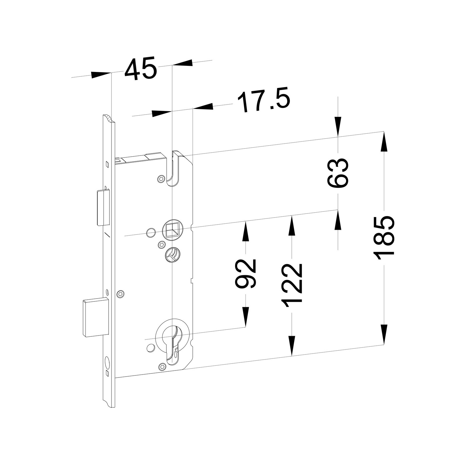 - Schlosskastenhöhe: 185.00 mm