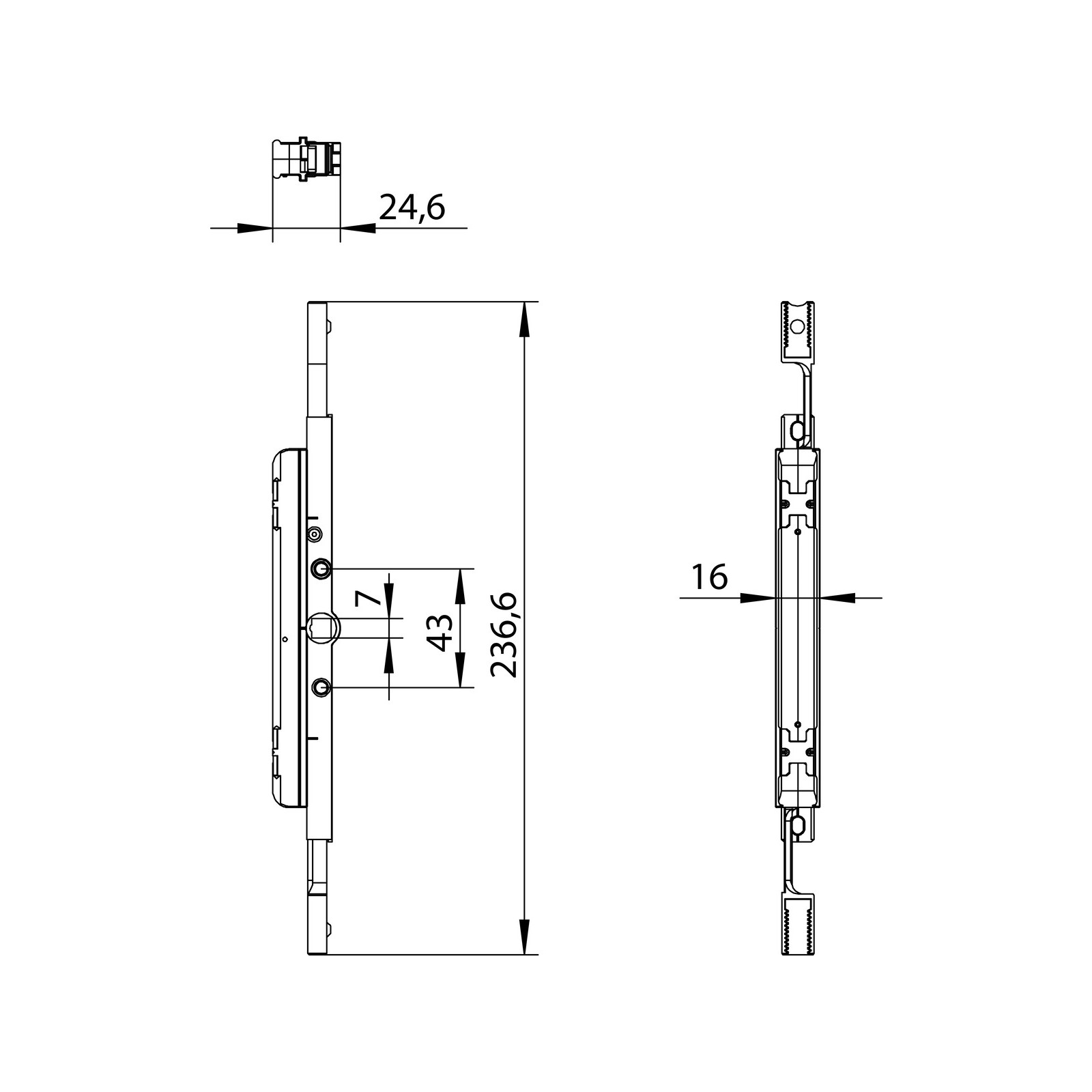 - Getriebehub 18,5 mm bei Fenstergriffdrehung um 90°